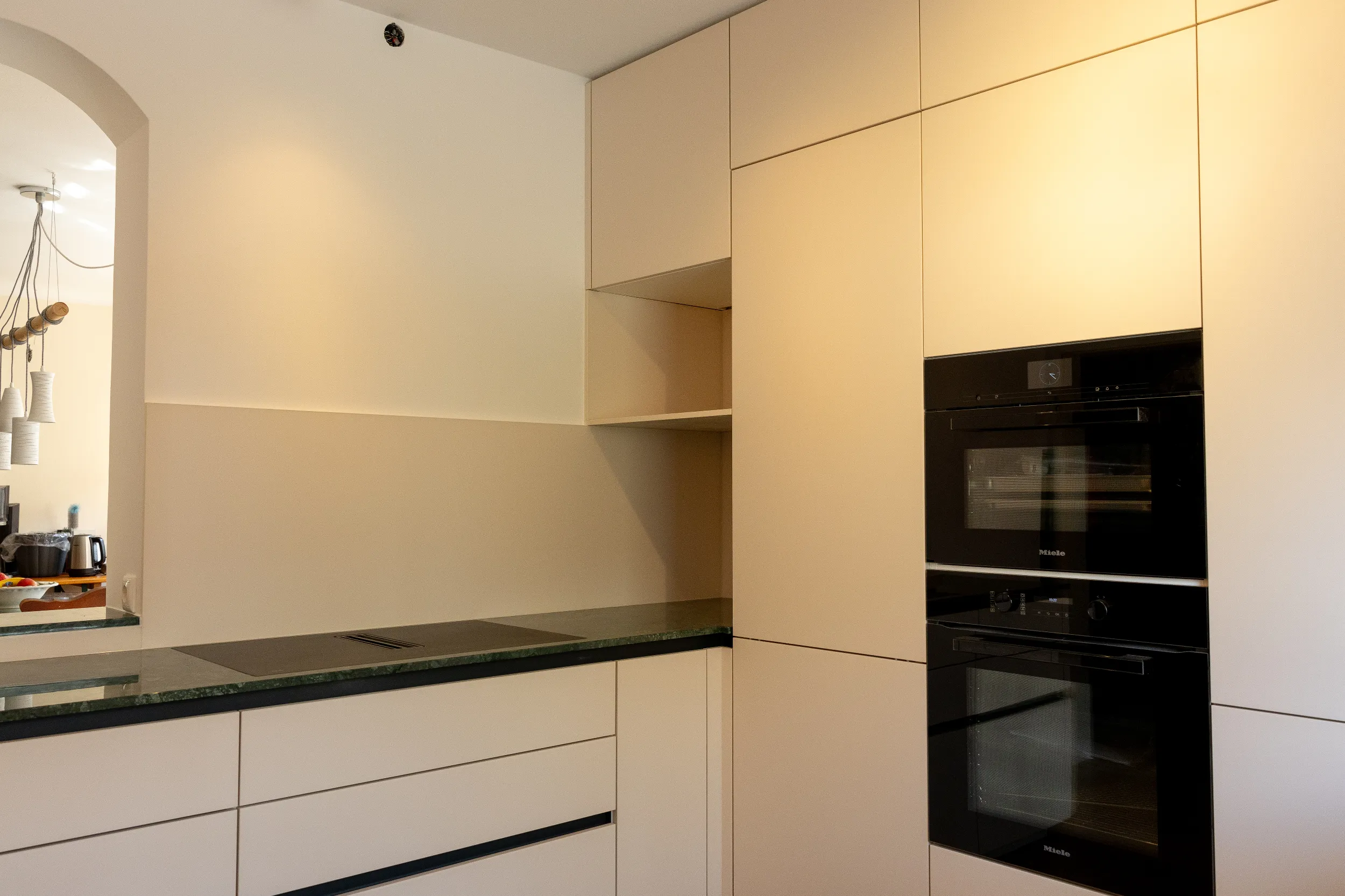 Der Prozess beginnt mit der Bewertung Deiner Räumlichkeiten und Wünsche, gefolgt von einer sorgfältigen Material- und Farbauswahl. Wir planen jedes Detail, bieten eine fotorealistische Darstellung Deiner neuen Küche und begleiten Dich bis zur finalen Abnahme.
