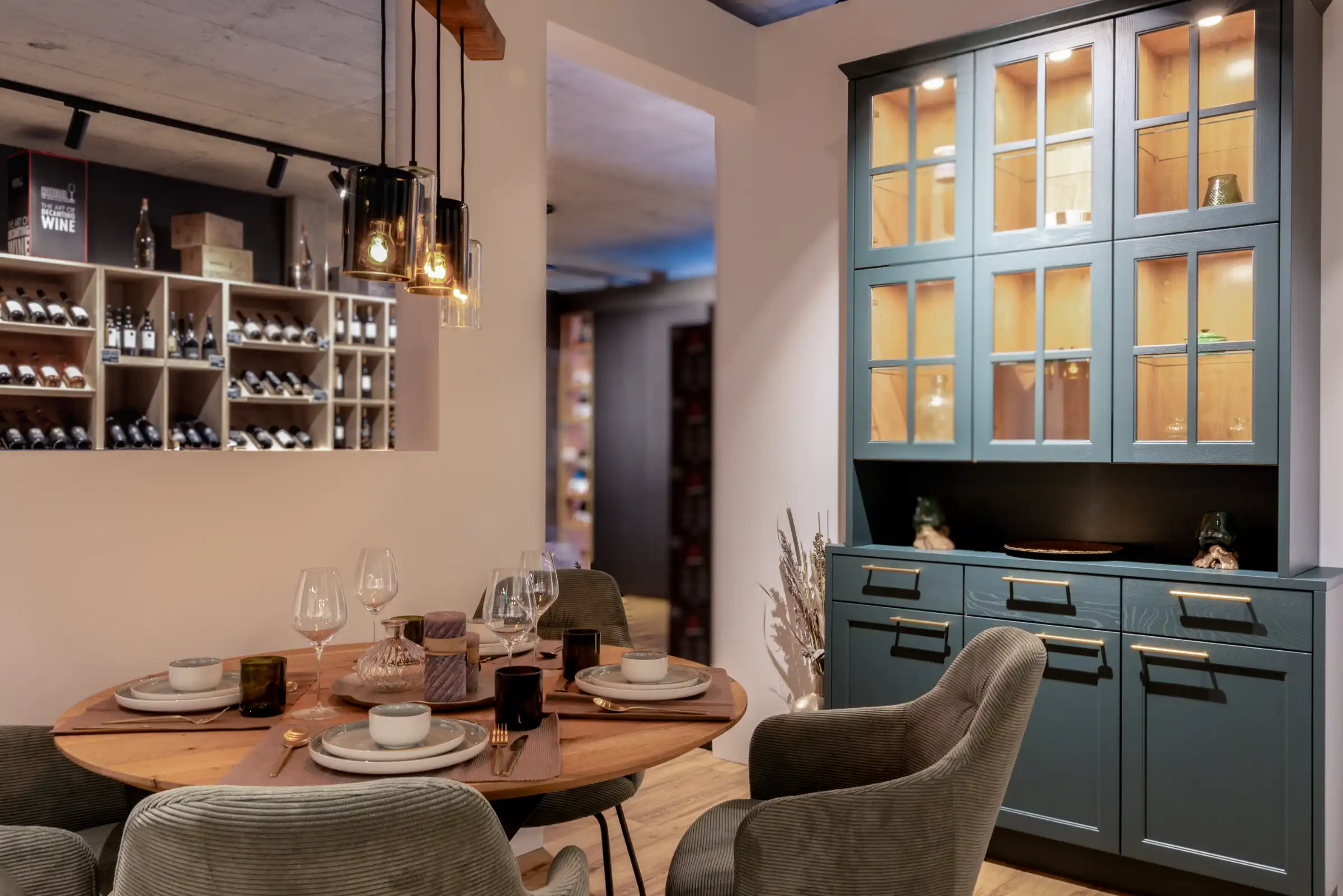 Wir nehmen Dich an die Hand und begleiten Dich durch den gesamten Planungsprozess. In unserem einzigartigen Küchenstudio findest Du nicht nur moderne Küchenlösungen, sondern auch eine Vinothek mit gemütlicher Loungeecke, die zum Verweilen einlädt.
